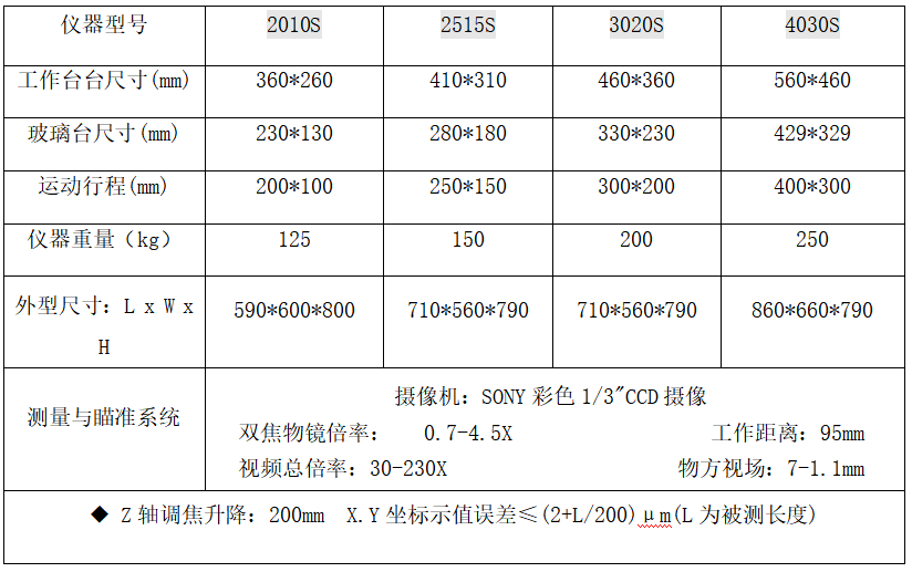 高精度二次元影像測量儀技術參數:
